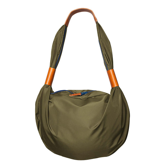 The system to expand the volume of your bag is just a simple gesture : by moving the leather sleeve. Even when carrying your bag on your shoulder, you can vary its size.