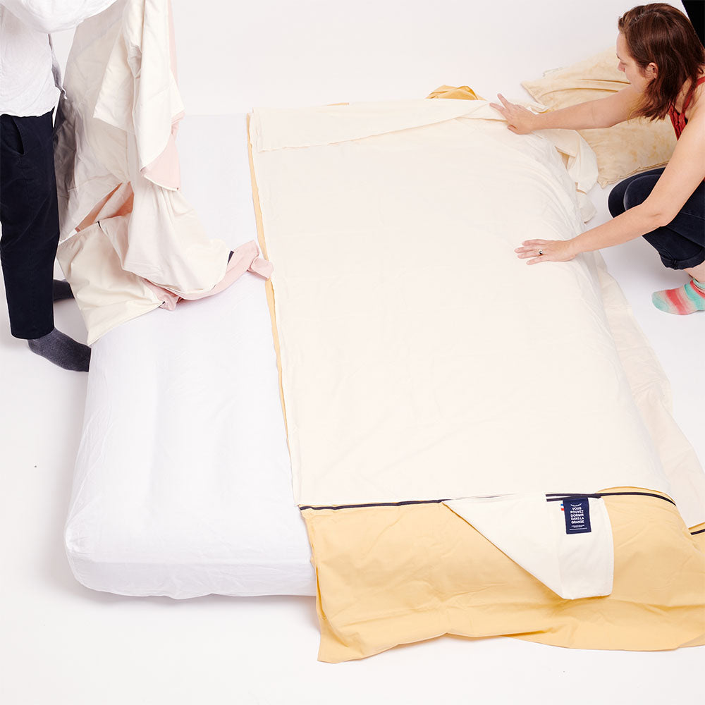 An all-in-one bed linen set for a sleepover at a friend's house, or to welcome guests with simplicity in your mind.